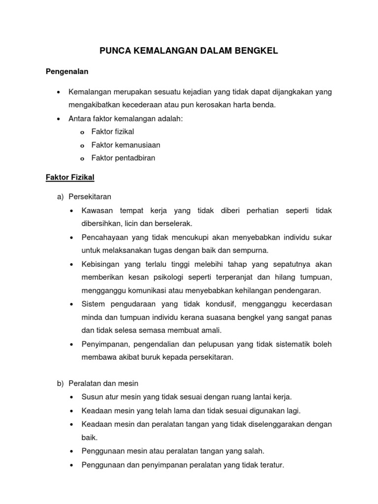 Punca Kemalangan Dalam Bengkel