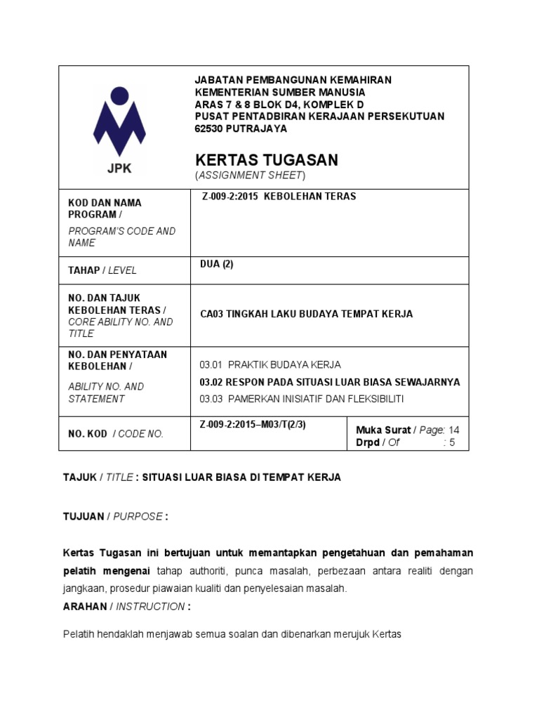 Kertas Tugasan Assignment Sheet