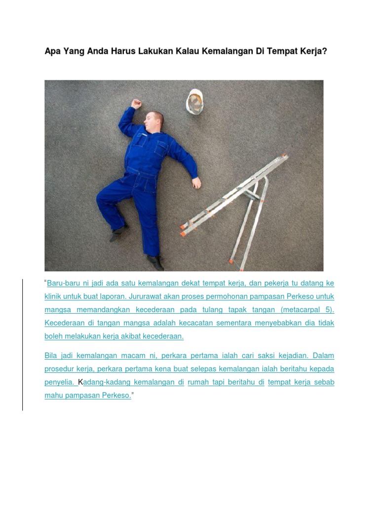 Apa Yang Anda Harus Lakukan Kalau Kemalangan Di Tempat Kerja